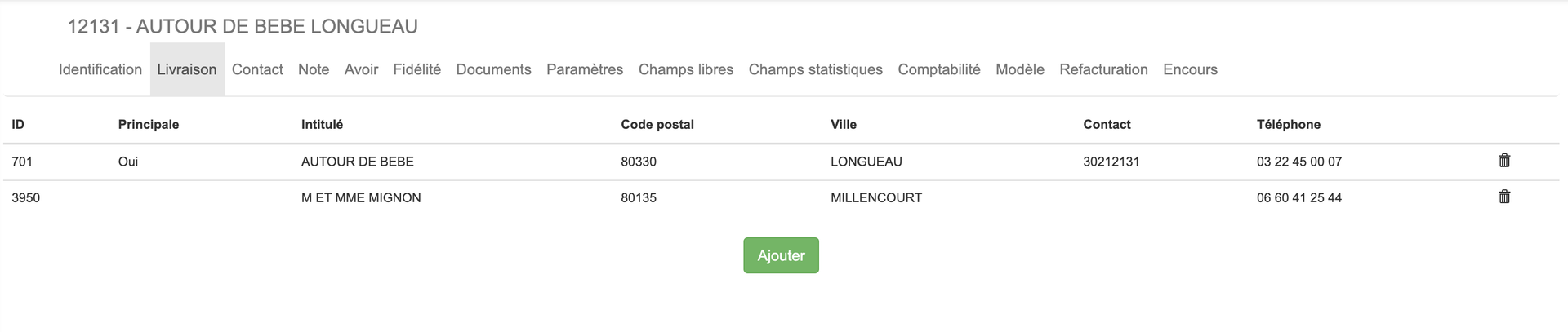 Vous pouvez créer autant d'adresses de livraison que vous le souhaitez. Ainsi dans vos documents vous pourrez sélectionner l'adresse souhaitée par le client