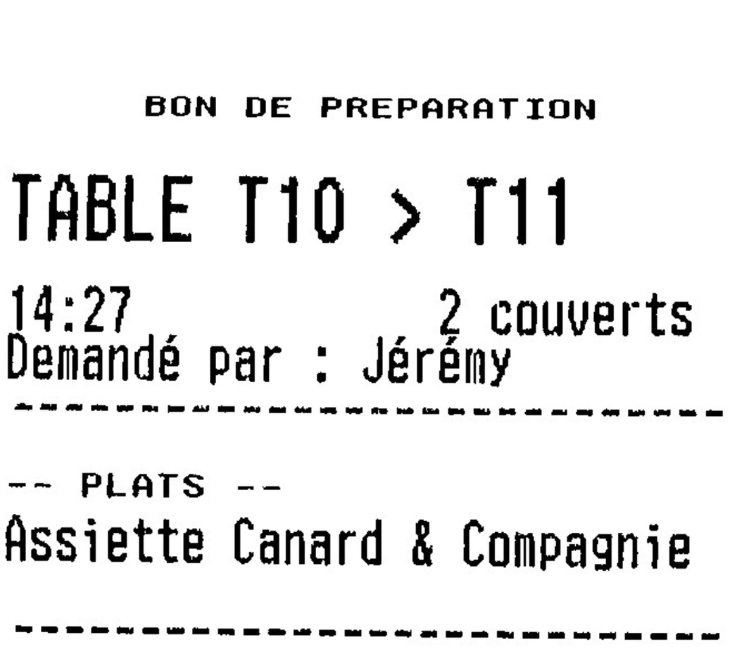 Exemple de ticket après un déplacement de table