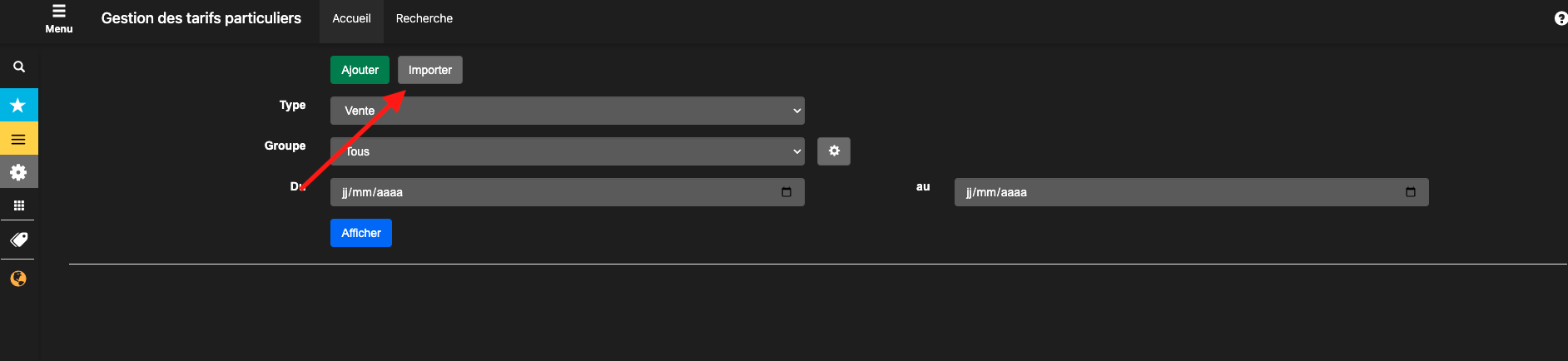 Maintenant que votre fichier est prêt, il vous faut vous rendre dans le module "tarif particulier".