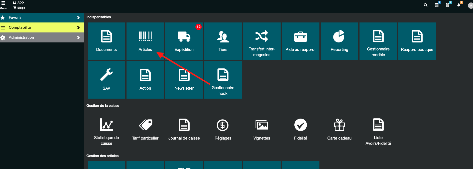Pour commencer, il est nécessaire de vous rendre dans le module "Gestionnaire article".