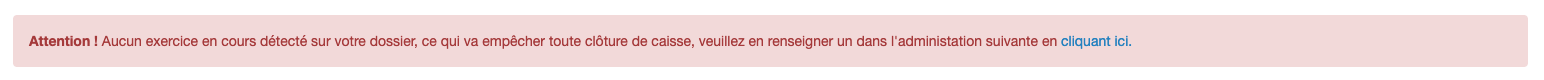 Si vous n'actualisez pas votre exercice lorsqu'il arrive à son terme, la clôture de caisse deviendra impossible.