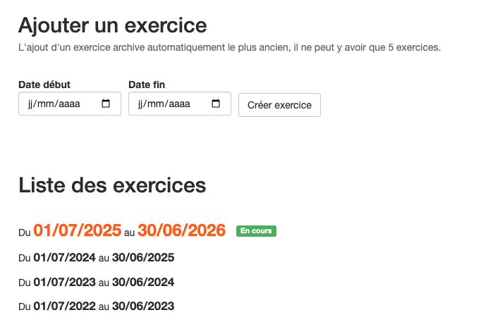 Il est nécessaire d'ajouter un nouvel exercice chaque année.