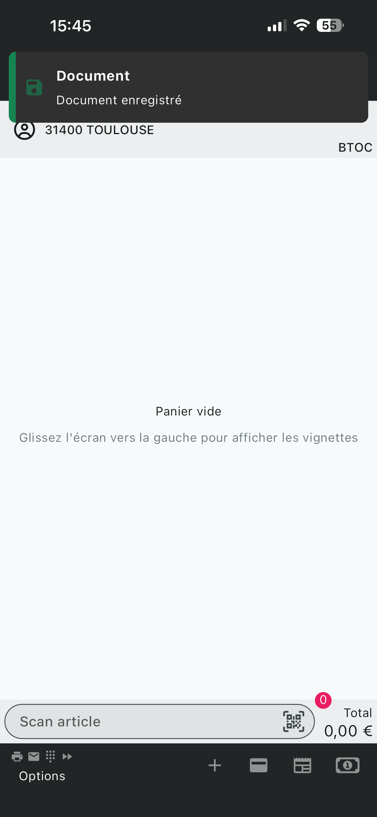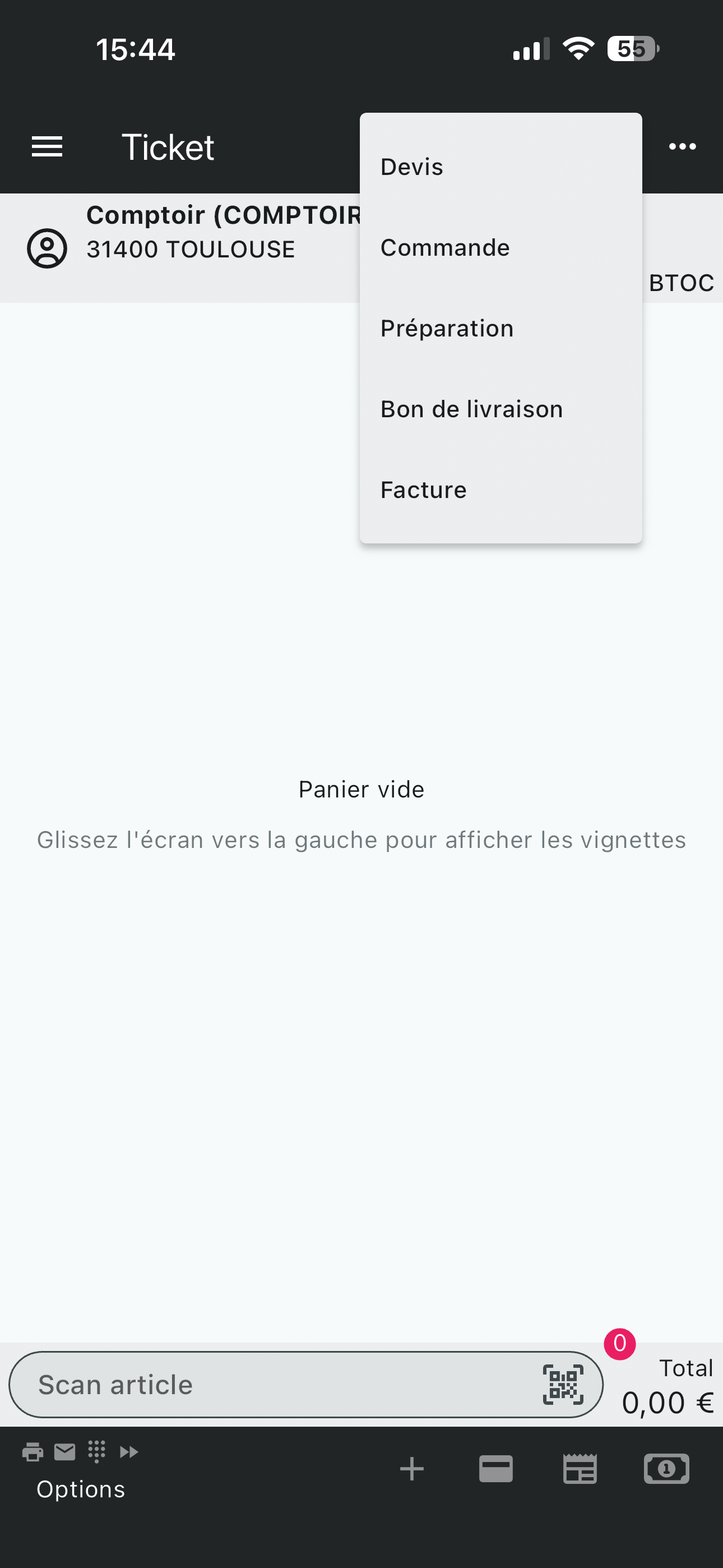 Dans la partie caisse de l'application, vous avez la possibilité de créer tout type de document :