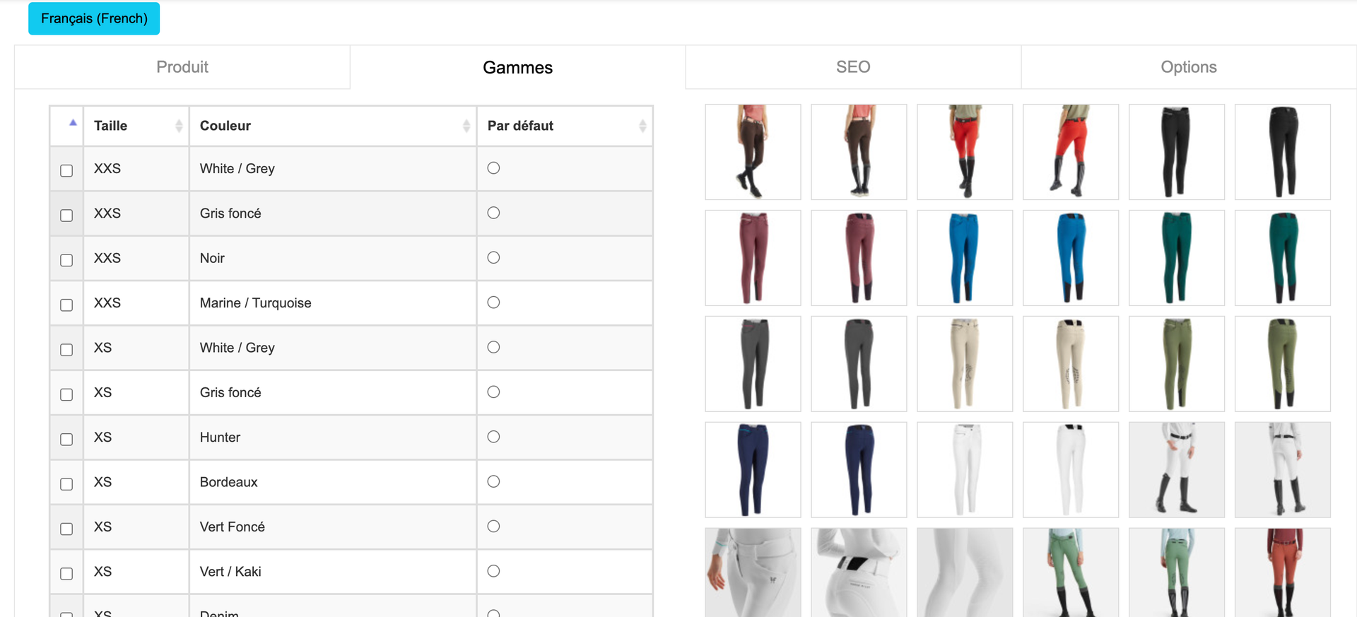 Cet onglet vous permet d’associer en masse des photos à des couleurs ou des tailles