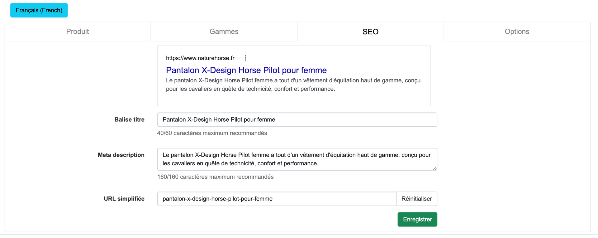 Ici vous allez pouvoir indiquer les balises, les méta, les URL permettant un référencement optimal de votre site.